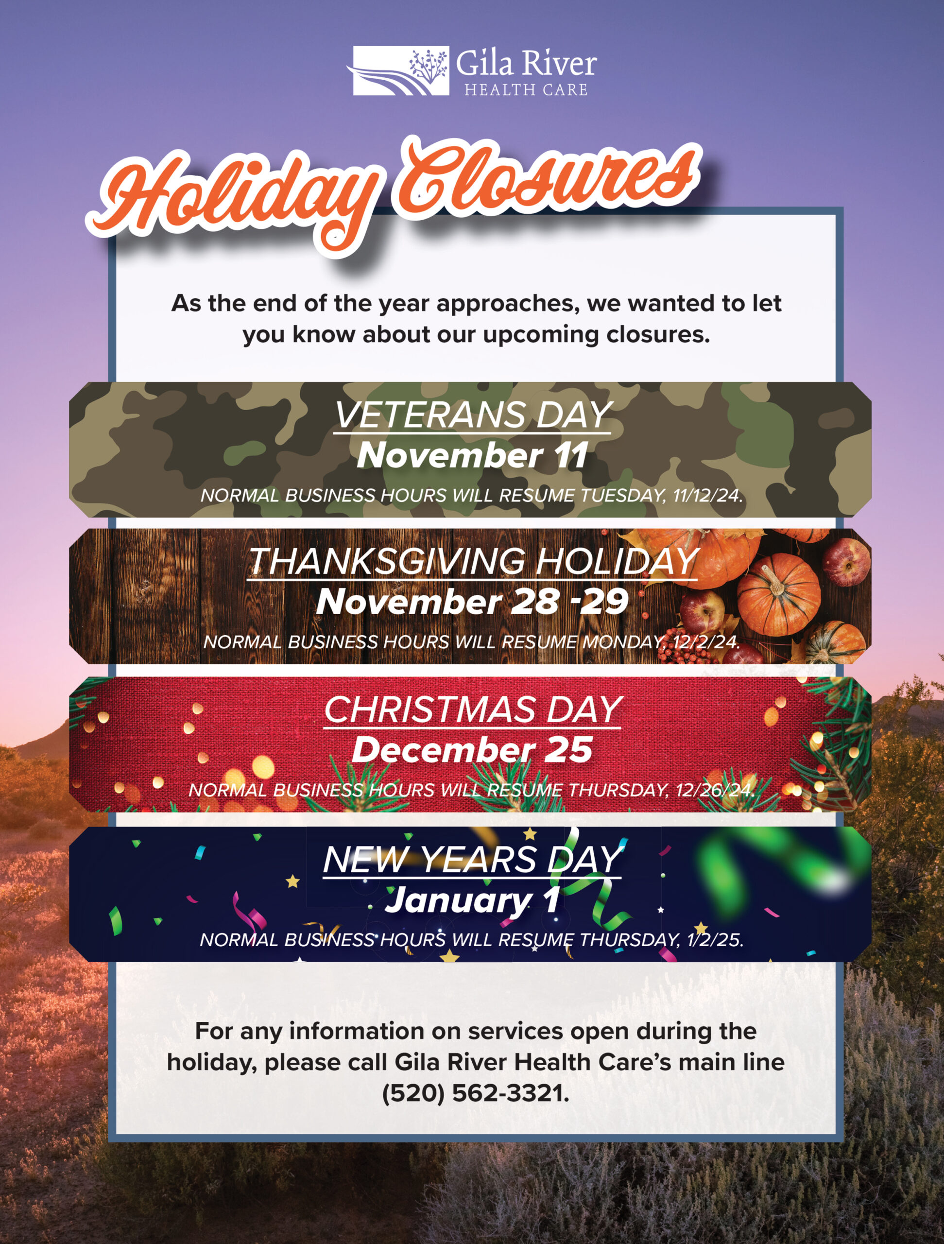 GRHC Holiday Closures 2024