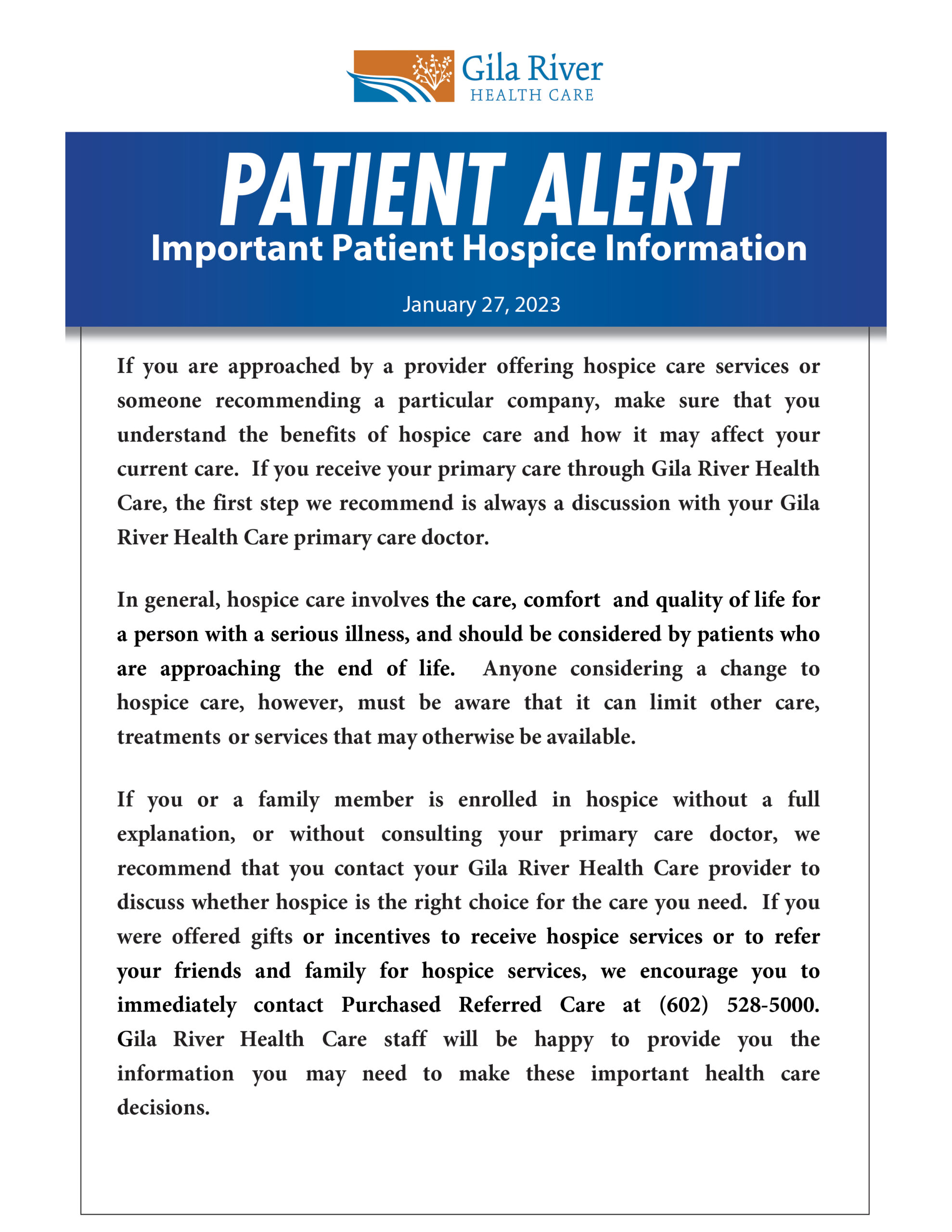 NEW Important Patient Hospice Information 1.27.23 FINAL UPDATED